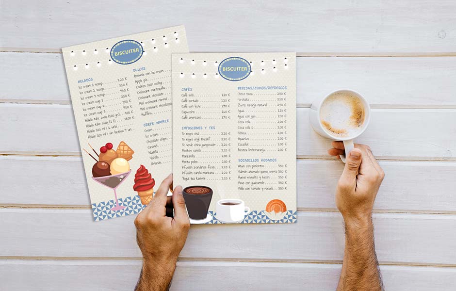 CARTA Biscuiter Carta per a productes de la cafeteria. Categoria: Comunicació gràfica Sector: Gelateria artesana - cafeteria