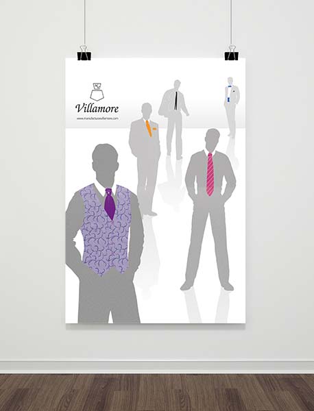 Cartel Manufacturas Villamore Cartel para stand. Complementos del vestir masculino en líneas de corbatería y ceremonia Categoria: Comunicación gráfica Sector: Complementos del vestir masculino en líneas de corbatería y ceremonia
